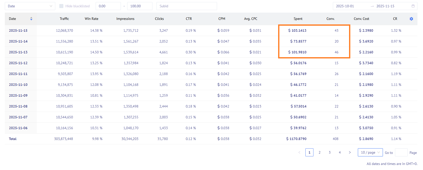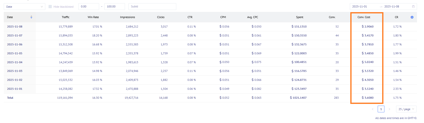 3. Focused on increasing custom bids on high-performing subIDs while monitoring win rates and cost per conversion.