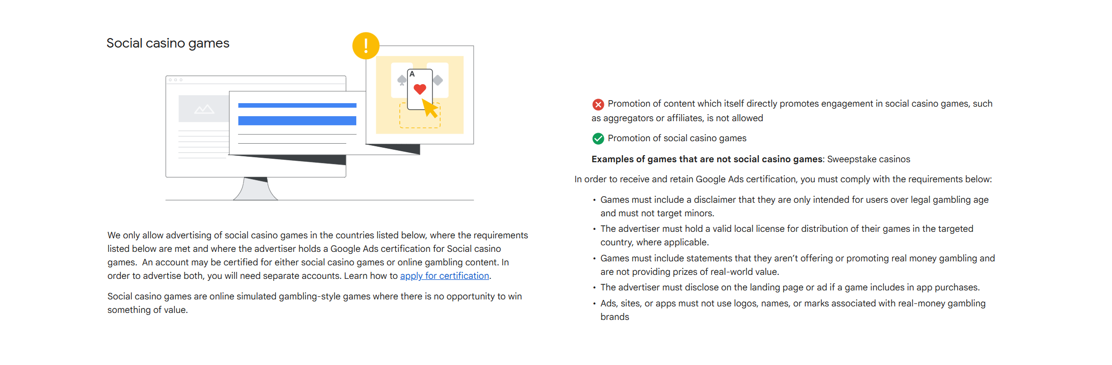 Context: To run social casino ads on Google, previously you needed a special Social Casino Games Certification.
