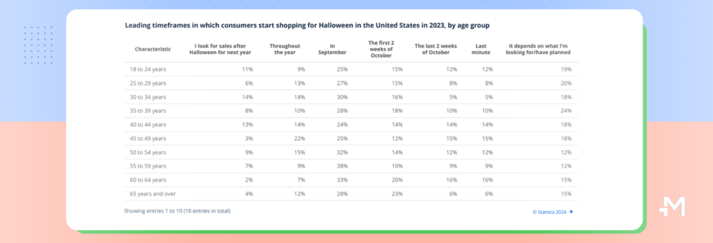 Consumers will generally start planning for Halloween as early as September, doing a lot of research on costume ideas, decorations, and party supplies. As October approaches, buyers’ interest will intensify, leading up to the final days of the month where last-minute shoppers will be avid for deals.
